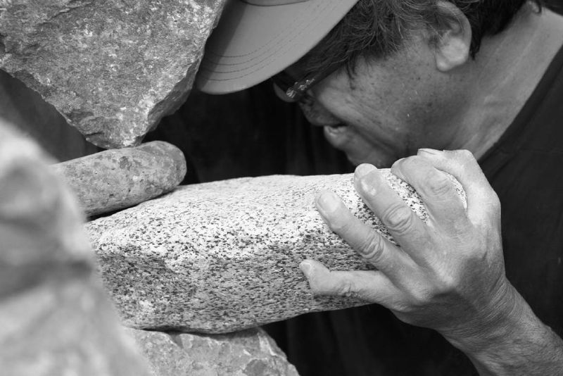 Some have said that Bill makes it look too easy when you see him sitting and smiling next to an array of stones which seem to float weightlessly skyward. Those who have watched him in action -- or who have tried balancing large rocks themselves -- know that it can be a strenuous and physically demanding endeavour. John Jewett captured these images of Bill in October, 2006, in Sausalito, hard at work.