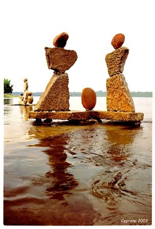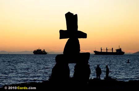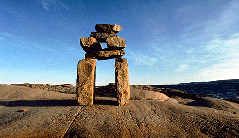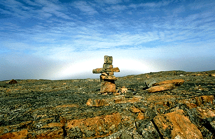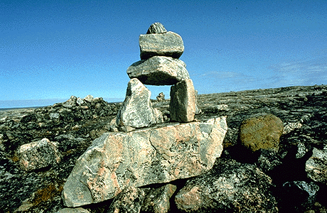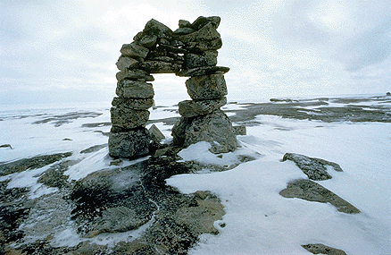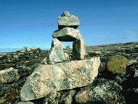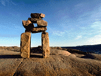 Canada's excellent Museum of Civilization has documented, through the photographs and text of enthnogeographer Norman Hallendy, the stark, stunning beauty of numerous examples of Inuksuit and other rock and stoneworks by the Inuit of the Arctic regions. The online (and travelling) exhibition, Places of Power: Objects of Veneration in the Canadian Arctic describes the images directly below (and many more) in great depth and detail. Even the casual observor might imagine the full figures that could have towered in ancient times above what may today be only remnants of their bases. More images and text are featured in Mr. Hallendy's book, Inuksuit: Silent Messengers of the Arctic. These images are shown on this site by direct permission of the author, and should not be used anywhere else without such permission.