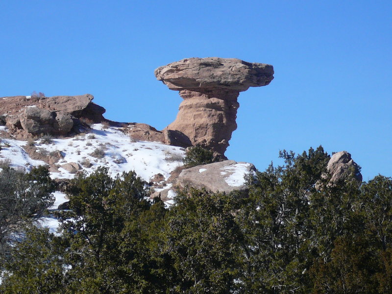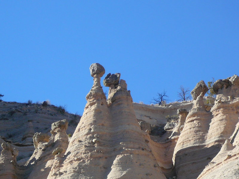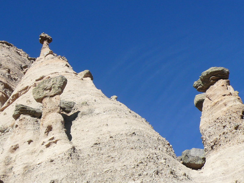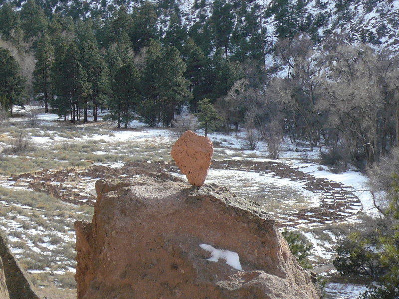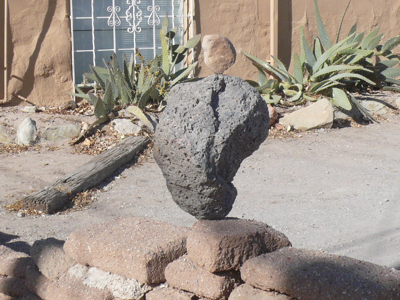 Despite the ample availability of rock and stone in the arid environment and the millenia-long skill of constructing with them (some of the New Mexico pueblos were the largest dwelling structures in the world when the Europeans arrived), there appears to be no evidence whatever of any tradition of rock stacking or balancing in this region. The naturally formed "balancing rocks", "mushroom rocks", and "tent rocks" with which this state abounds may inspire visitors, but the natives have left no trace of emulating those phenomena at any time.