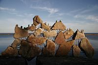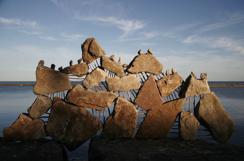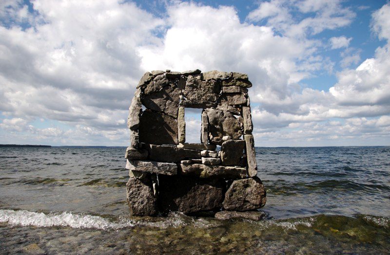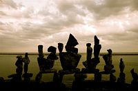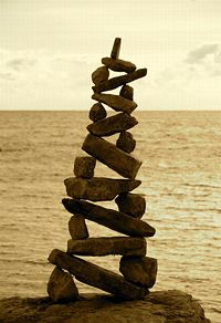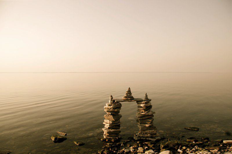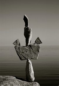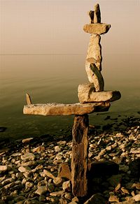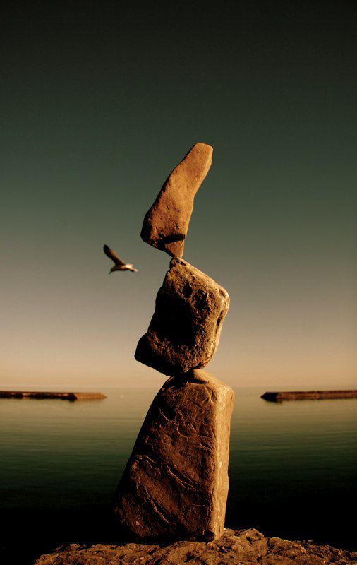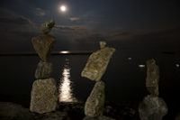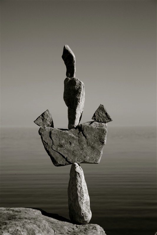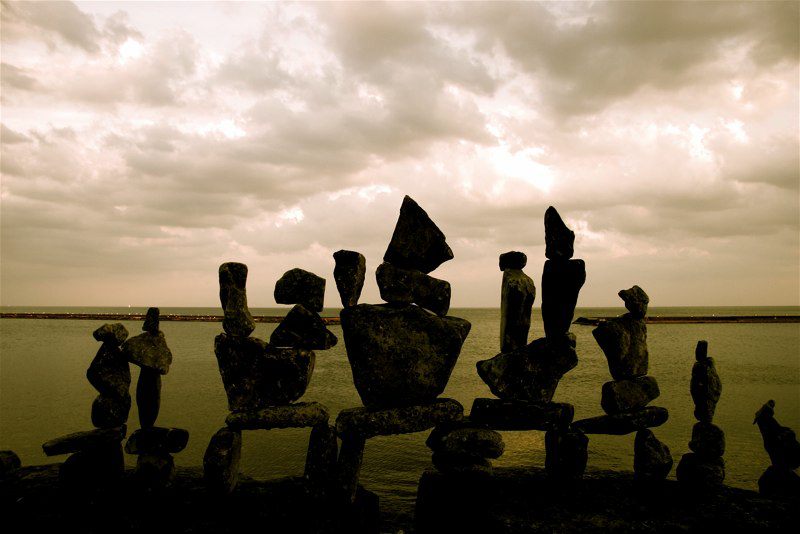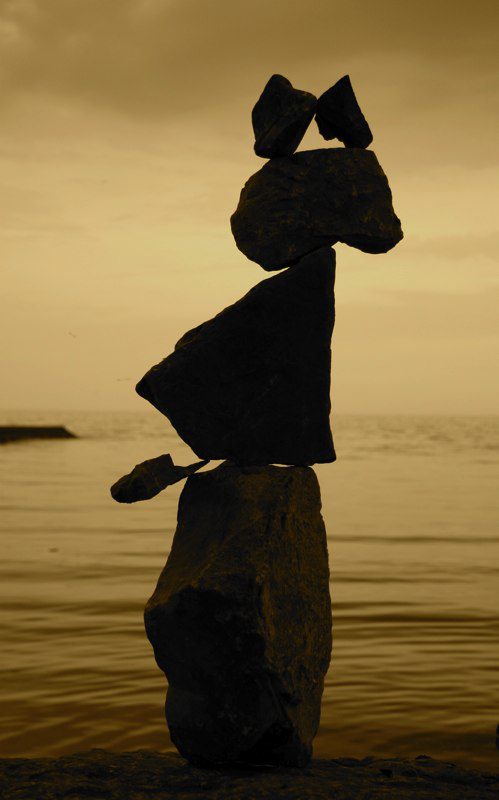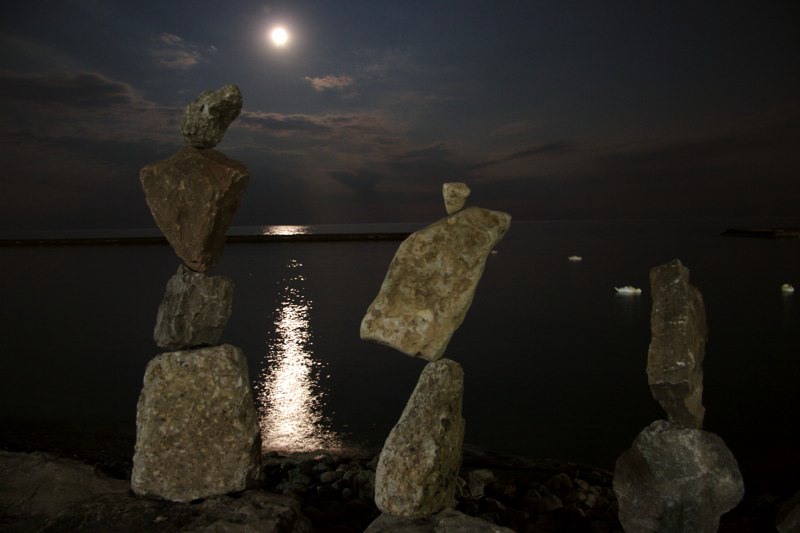 Though Montreal native Peter Riedel has said his rock sculptures are known as "environmental" art, those familiar with the discipline and craft might also call them "experimental". He continually expands the possibilities of balancing while maintaining a firm grasp of the basics and the nuance of the form. While he works as a professional photographer, he comments that with this art "The photographs are not the purpose, but rather the end result in the creative process." He has written that the Lake Ontario waterfront in Toronto has become a site for his meditations and musings, and ultimately, "the creative source and inspiration" for his rock balancing structures.