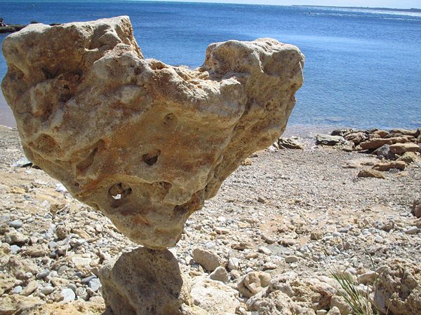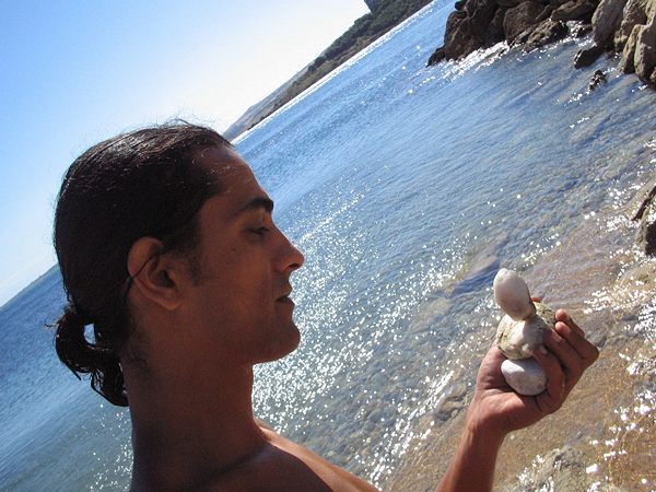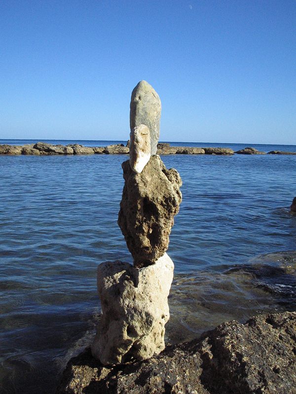 Crotone, in Calabria, where a naturally balanced rock formation and the ruins of a Greek temple graced the shoreline for millenia. Although the last column of the temple still stands, the massive rock had fallen by the end of the 20th century. Inspired by this local monumental scenery since childhood -- and now passing on the tradition to his son, Simone, Mario expresses his appreciation for the possibilities -- and fundamental temporality -- of stone by creating his own balances.