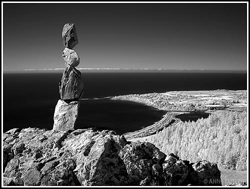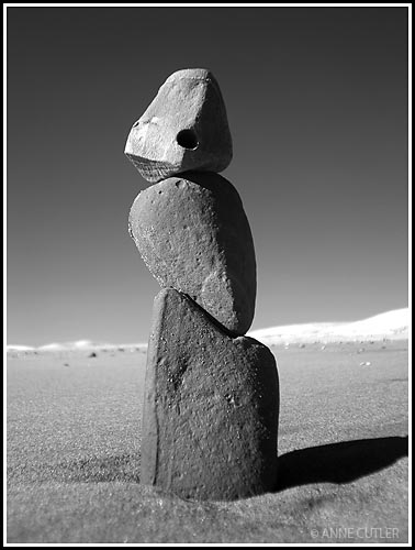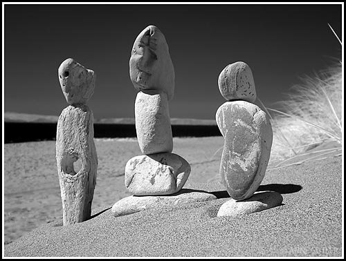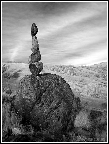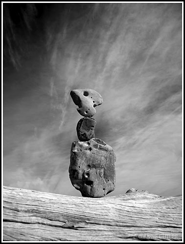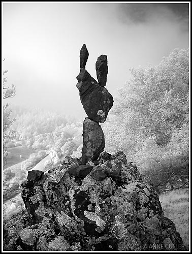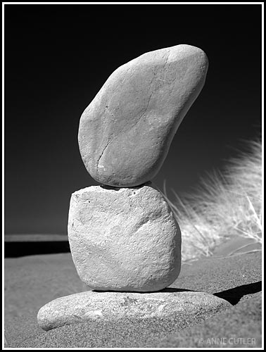 No human eye can see these balances the way a digital camera modified to be sensitive to the near-infrared spectrum can. Unlike the far-infrared of thermal imaging, the light gathered by Anne Cutler for her remarkable photographs of natural objects cast in unique settings is just below our ordinary perception. Removing the infrared blocker (which protects privacy, because these wavelengths can penetrate clothing) from the camera's sensor can reveal a depth of contrast normally seen only by insects and envisioned by mystics.