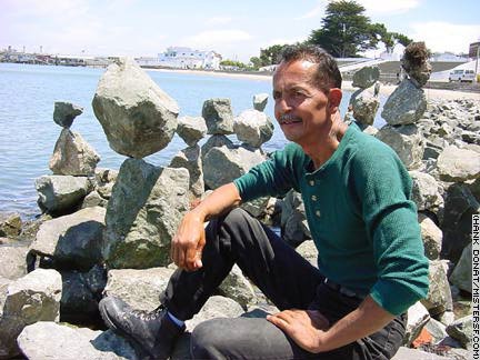 The name of Ron Divino comes up frequently whenever rock balancing is discussed in the SF Bay Area. His individual blend of deep spirituality and sincere friendliness is exemplified by his comment on MrSF.com that, "No matter what's going on, Mother Nature provides us with this beautiful world"; a beauty he contributed to with his playful and exuberant art, and with his optimism despite personal misfortune. His continued commitment to faith and balance after a stroke are shown on the One Hand Balancing page of this site.