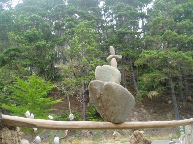 Stacker / balancer Albert Ellis ("Albalonee") writes from Jenner, California, that he displays his work by the highway, and has sold art to visitors from around the world. He says that while he does production pieces (it's his only source of income), he strives "for the artistic side first." He has submitted several of his images for a Guest directory, and reports that raccoons have been known to knock over a sculpture in his outdoor studio 80 feet above the Pacific Ocean.