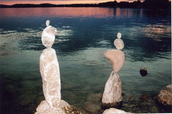 Photographer Heinrich Unser sent Bill Dan photos of the work of Sepp Bögle, an accomplished balancer often working along the shore of the Bodensee (Lake Constance) in Southern Germany. As Georg Gagesch has written in his poetic homage, ""Hallo man! Would you like to play with us, to us our ponderousness take?" ("Hallo Mann! Möchtest du mit uns spielen, uns unsere Schwerfälligkeit nehmen?" - Google machine translation).